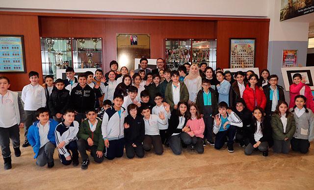 Atölye ziyaretinde Başkan Kartoğlu’na portre sürprizi yapıldı. Görsel sanatlar öğretmeni Hayriye Çalışır, Kartoğlu’nun Kudüs ziyaretinde yaşadıklarını anlatan, Kubbetüs Sahra ve Türk bayrağı kompozisyonuyla yaptığı portreyi Başkan Kartoğlu’na hediye etti.