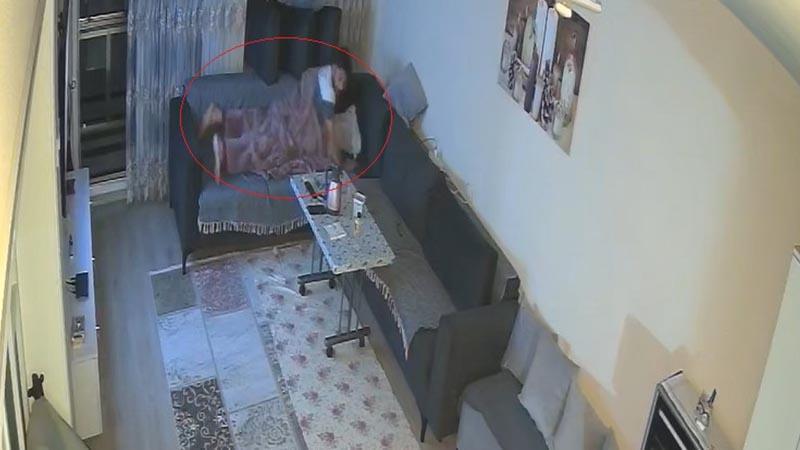Balıkesir’in Sındırgı ilçesinde meydana gelen 6.1 büyüklüğündeki depreme, Bursa’daki evinde uyurken yakalanan Umut Erel’in (27) yaşadığı panik, güvenlik kamerasına yansıdı.