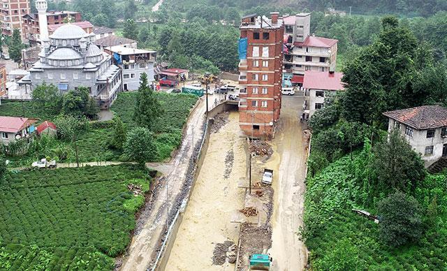 Rize'de, dünkü yağışla meydana gelen selin ardından temizlik ve hasar tespit çalışmaları sürerken, Muradiye beldesi Kömürcüler köyünde tedbir amacıyla boşaltılan dere yatağındaki 7 katlı binanın sahibi Mustafa Yazıcı, sorunun köprüden kaynaklandığını iddia etti.