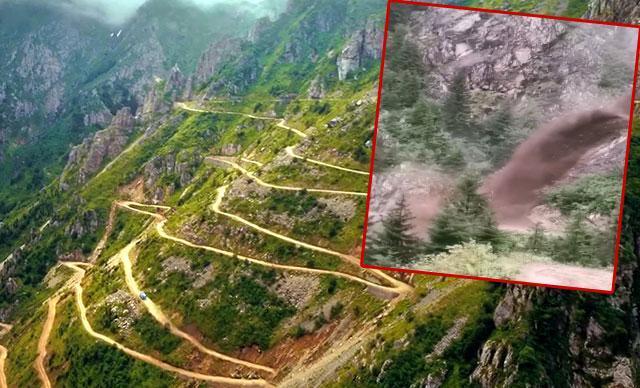 Trabzon-Bayburt sınırında, 'Derebaşı Virajları' olarak bilinen D-915 yolu, sağanak sonrası meydana gelen heyelan nedeniyle ulaşıma kapandı. Sel ve heyelan anı da cep telefonu kamerasına yansıdı.