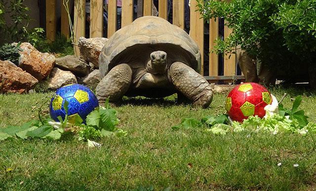 Kocaeli'nin Darıca ilçesindeki Faruk Yalçın Hayvanat Bahçesi ve Botanik Parkı’nın en yaşlı sakini olan dev aldabra kaplumbağası Tuki, kendisi için düzenlenen 99'uncu yaş günü partisinde, yarın oynanacak olan Fenerbahçe - Galatasaray derbisinin galibinin Galatasaray olacağını tahmin etti.