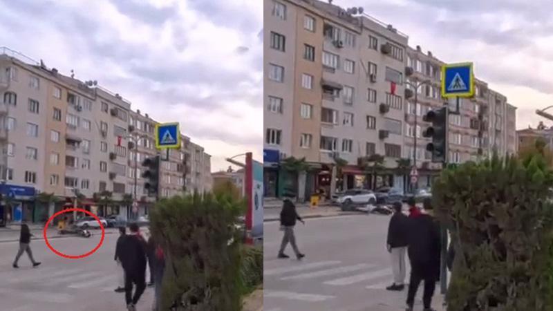 Devrilen motosikletten düşen sürücü metrelerce sürüklendi; kaza kamerada