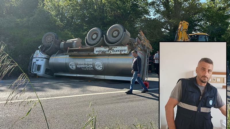 Sakarya'nın Karasu ilçesinde Büyükşehir Belediyesi’ne ait su tankerinin devrildiği kazada sürücü Ömür Erol (47) hayatını kaybetti.