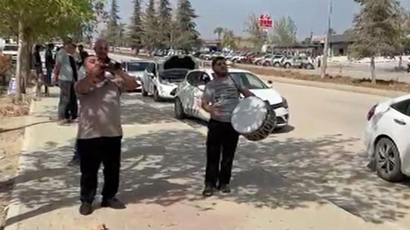 Adana'da direksiyon sınavını kazanan Aykut Çalhan (37), sevincini davul- zurna çalarak kutladı. O anlar cep telefonu kamerasıyla kaydedildi.