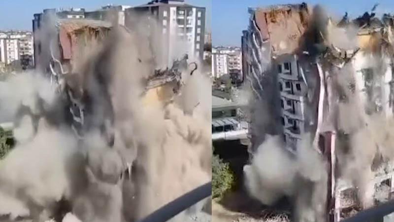 Kahramanmaraş merkezli 6 Şubat 2023'teki depremlerde ağır hasar aldığı için tahliye edilen Kayapınar ilçesi Diclekent Mahallesi’ndeki 11 katlı bina, kontrollü yıkım sırasında çöktü. Çökmeyle çevreyi toz bulutu kaplarken, o anlar cep telefonu kamerasıyla kaydedildi. Binanın enkazının kaldırılması için çalışma başlatıldı.