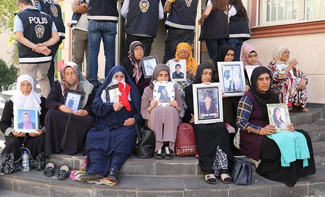 Diyarbakır'da, terör örgütü PKK tarafından kaçırıldığını belirttikleri çocuklarının bulunmasını isteyen 45 ailenin HDP il binası önündeki oturma eylemi, 24'üncü güne girdi.