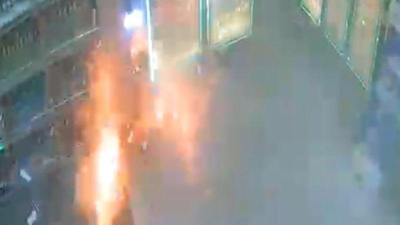 Öte yandan olay, güvenlik kamerasına yansıdı. Görüntülerde, yüzü kapalı şüphelinin kapısını açtığı marketten içeri patlayıcı madde atıp kaçtığı, bir süre sonra patlamanın meydana geldiği ve yangın çıktığı, iş yerinin yanından geçen bir kadının da patlama sırasında kırılan camlardan etkilenip, hızla bölgeden uzaklaştığı görüldü. Ayrıca, çevredekilerin marketin içine girip, bidonla su dökerek yangını söndürmeye çalıştığı anlar da kameraya yansıdı.