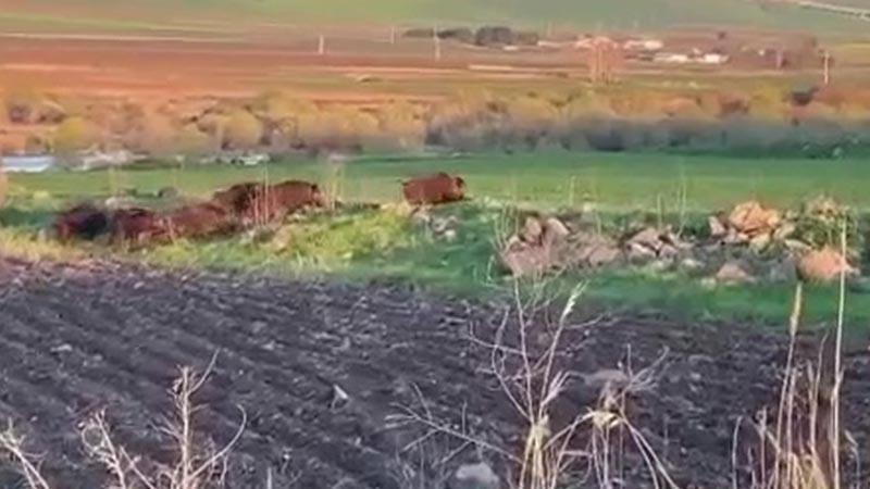 Diyarbakır’da tarlaya giren domuz sürüsü kamerada
