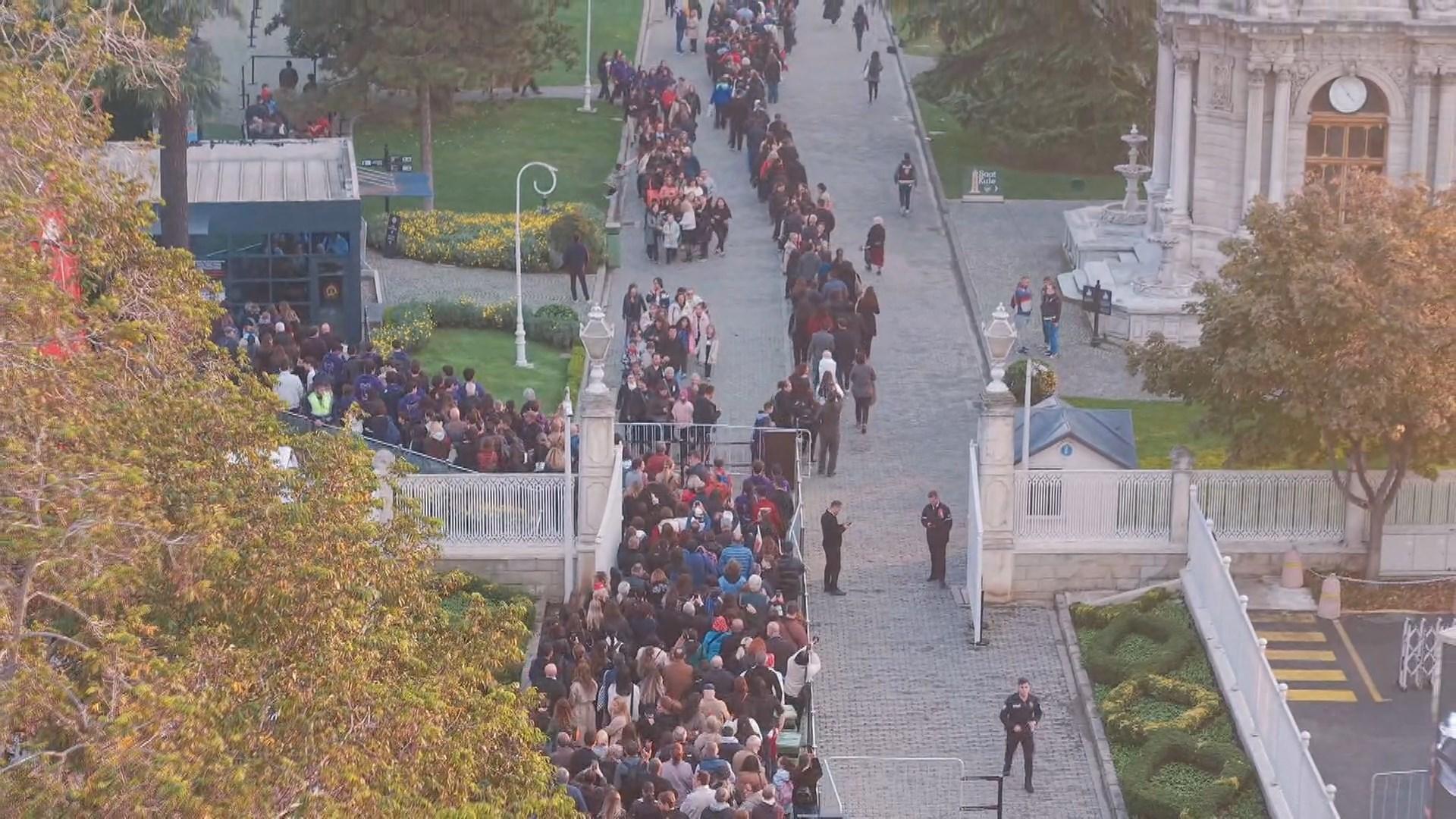 Türkiye Cumhuriyeti'nin kurucusu Mustafa Kemal Atatürk ölümünün 87'nci yıl dönümünde Dolmabahçe Sarayı'nda düzenlenen törenle anıldı. Saatler 09.05'i gösterdiğinde Atatürk'ün hayata gözlerini yumduğu Dolmabahçe Sarayı'nda hayat durdu. Saygı duruşunda bulunulmasının ardından ellerinde Türk bayraklarıyla Dolmabahçe Sarayı'na gelenler içeri girmek için uzun sıra dışarıda bekledi. 7'den 70'e yüzlerce kişi metrelerce uzayan kuyrukta bekledi. Ata'nın hayata gözlerini yumduğu odaya girenler saygı duruşunda bulunup yatağa çiçek bıraktı.