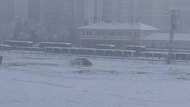 Olay, ilçeye bağlı Sümer Mahallesi’nde bulunan trafiğe kapalı bir alanda meydana geldi. İsmi öğrenilemeyen sürücünün drift attığı kamyonet, kara saplandı. O anlar cep telefonuyla görüntülendi. Daha sonra kamyonetten inenlerin uğraşları sonucu araç bulunduğu yerden çıkarıldı. (DHA)