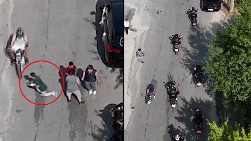 Düğün konvoyunun önünü kesmek isteyen çocuğa motosiklet çarptı; o anlar dronla görüntülendi