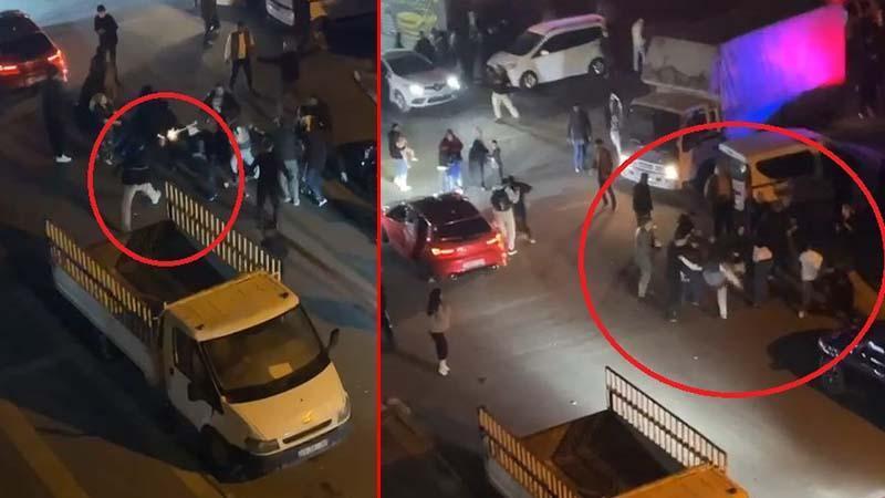 Öte yandan, kavga anına ait yeni görüntüler ortaya çıktı. Cep telefonu kamerasına yansıyan görüntülerde, tarafların önce tekmeli yumruklu kavga ettiği, ardından kalabalığın arasına koşarak gelen ve elinde tabanca bulunan 1 kişinin hedef alarak birine peş peşe ateş ettiği, kurşunların isabet ettiği kişinin yere yığıldığı, şüphelinin ise kaçtığı görüldü.