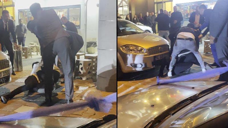 Olay, dün akşam Yukarısoku Mahallesi'ndeki bir düğün salonunun önünde meydana geldi. Düğünden çıkan bazı davetliler arasında, bilinmeyen bir nedenle tartışma çıktı. Tartışmanın büyümesi ile taraflar, tekme-tokat birbirine girdi. Kavga, diğer davetlilerin araya girmesi ile sona erdi. Fakat bu sırada uzaklaşmak istemeyen bir kişi nedeniyle kavga yeniden alevlendi. Araya girenler, tarafları ayırdı. Kavga cep telefonu kamerası ile görüntülenirken, taraflar birbirinden şikayetçi olmadı.