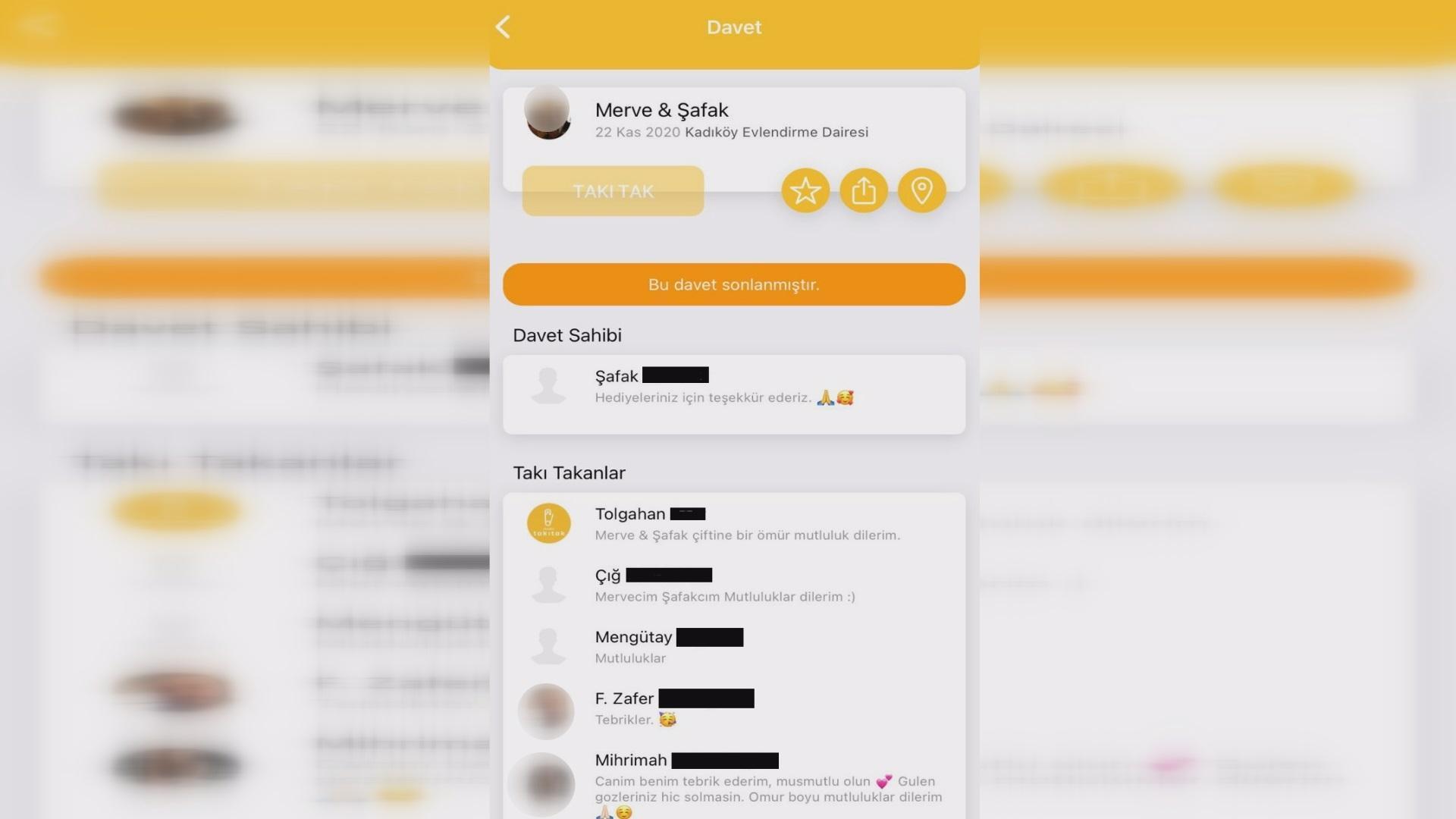 Düğün sahipleri de uygulamanın faydalı olduğunu söyledi. Dünya evine giren Mert ve Sibel Koç çifti, “Güzel bir uygulama olmuş. Koronavirüs salgını yaşanırken tercih edilebilir. İnsanlar arasındaki teması azaltacağı için beğendik. Böyle bir takı töreni çok iyi olur” dedi. Davetliler ise artık teknolojinin çok fazla ilerlediğini belirterek uygulamanın faydalı olacağını ifade etti. Bir diğer davetli ise nikaha katılamayan kişilerin de rahatlıkla hediyesini gönderebilmesi açısından uygulamayı faydalı bulduğunu anlattı.