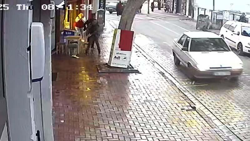 Öte yandan olay anı, iş yerinin güvenlik kameralarına yansıdı. Görüntülerde, otomobilin sokağa girmesi, bacağından vurulan Soykara'nın elindeki fırçayla sekerek kaçması yer alıyor.