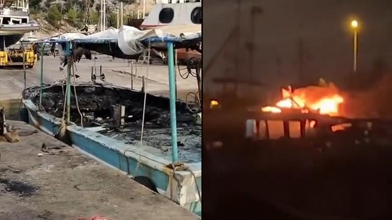 Düşen yıldırımdan çıkan yangında 3 tekne kullanılamaz hale geldi