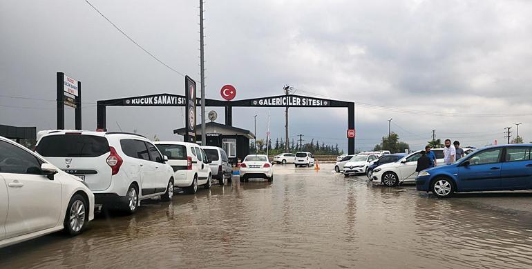 Kentte 13 dakika etkili olan şiddetli yağmurun ardından Galericiler Sitesi ile Küçük Sanayi Sitesi'ndeki bazı iş yerlerini de su bastı.