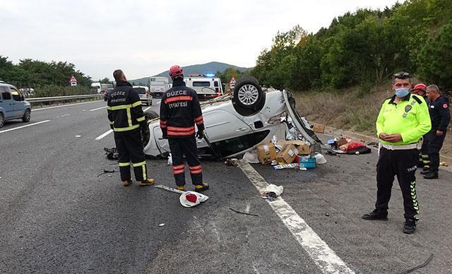 Kaza, saat 18.00 sıralarında TEM yolu Yeşilyayla mevkisinde meydana geldi. İstanbul istikametine giden Nazif Güner yönetimindeki 34 CLC 443 plakalı otomobil, sürücüsünün direksiyon kontrolünü yitirmesi sonucu yoldan çıkarak takla attı. Kazada, sürücü Nazif Güner ve eşi Rabia Güner yaralandı. İhbar üzerine gelen itfaiye ekipleri ters dönen aracın içerisinden Güner çiftini çıkardı.