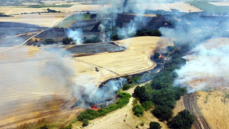 Edirne'de buğday tarlasında çıkıp ağaçlık alana sıçrayan yangın söndürüldü