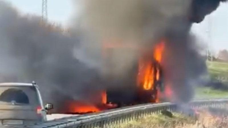 TIR'dan yükselen alevleri fark eden M.B., aracı güvenlik şeridine çekerek durumu itfaiyeye bildirdi. İhbar üzerine bölgeye polis, jandarma, itfaiye ve sağlık ekipleri sevk edildi.