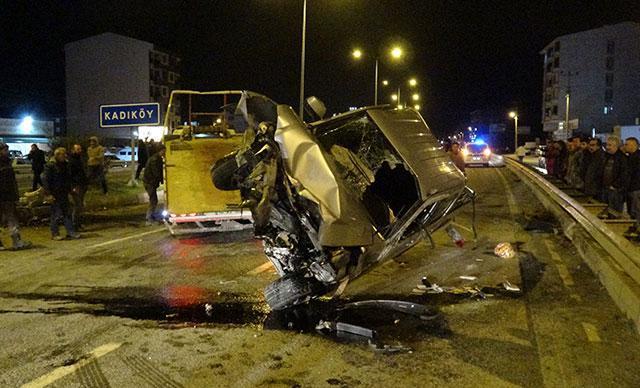 Kaza bu akşam saat 19.30 sıralarında Çanakkale-İzmir Karayolu Edremit Bölge Trafik İstasyonu karşısında meydana geldi. İddiaya göre, Edremit E-87 karayolunda aşırı hızlı olduğu iddia edilen Ali Ekber Köygülü yönetimindeki 10 KT 927 plakalı kamyonet, ilk olarak önünde seyir halindeki sürücüsünün ismi öğrenilemeyen 10 AAR 174 plakalı otomobile sağ arkadan çarptı. Kontrolden çıkan kamyonet şerit ihlali yaparak karşı yönden gelen Fatih Şentürk yönetimindeki 34 RU 8117 plakalı otomobile sol yandan hafif şekilde çarptıktan sonra arkadan gelen Ela Onat idaresindeki 06 DH 3613 plakalı otomobille kafa kafaya çarpıştı.