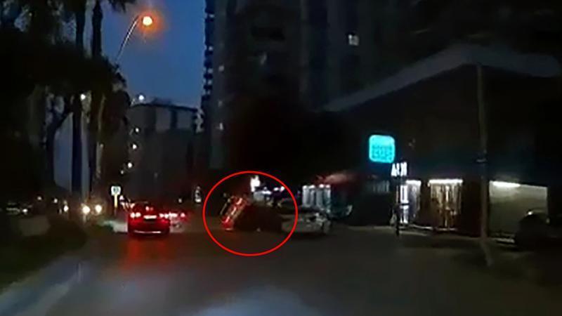 Adana’da ehliyetsiz sürücü E.K. (22), makas atmak isterken otomobiliyle önce önündeki başka bir otomobile, ardından da park halindeki araçlara çarptı. Kaza kameraya yansırken, E.K.’ye 27 bin 944 lira para cezası uygulandı.