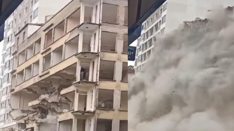 Kahramanmaraş merkezli depremlerde, Elazığ’da ağır hasar alarak tahliye edilen binaların yıkım işlemleri devam ediyor. Rızaiye Mahallesi’nde ağır hasarlı 6 katlı binanın bir bölümü kontrollü yıkım sırasında çöktü. Kimsenin yaralanmadığı o anlar cep telefonu kamerasına yansıdı.