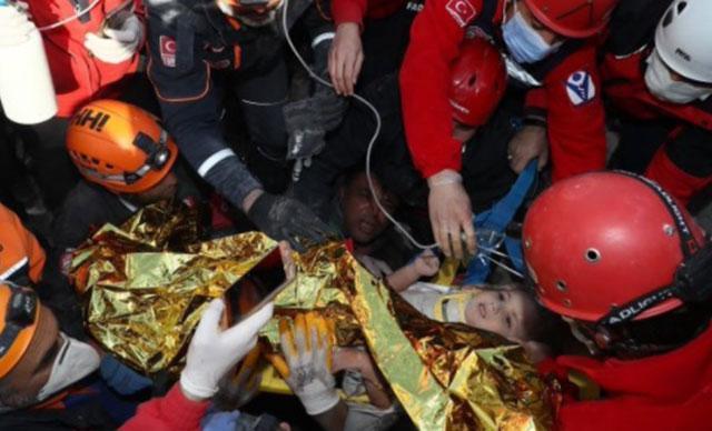 Emine Erdoğan Twitter hesabından, İzmir'in Seferihisar ilçesi açıklarındaki 6.6 büyüklüğündeki depremde, Bayraklı'da yıkılan Rıza Bey Apartmanı'nın enkazında mahsur kalan Ayda Gezgin'in, 91 saat sonra yaralı olarak kurtarılmasına ilişkin açıklamada bulundu.