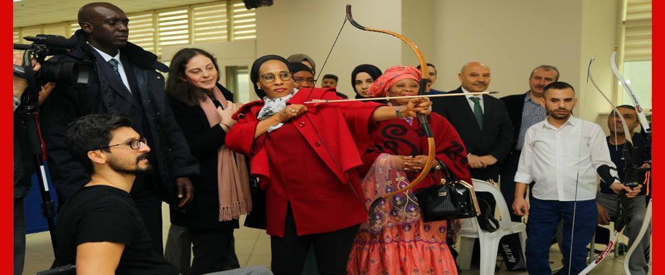 Engelliler, Gambiya Cumhurbaşkanı’nın eşine ok atmayı öğretti