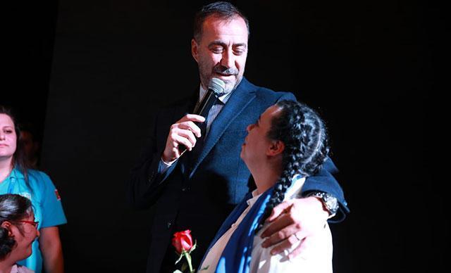 Konuşmasının ardından özel çocukların arasına giren Başkan Yılmaz, 'Hayat Bayram Olsa' isimli şarkıyı el ele tutuşarak birlikte seslendirdi.