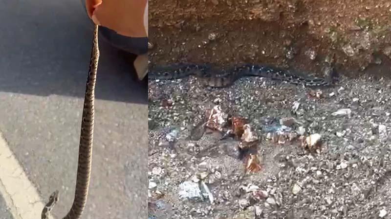 'Engerek' yılanını kuyruğundan yakalayıp, doğaya bıraktı; o anlar kamerada