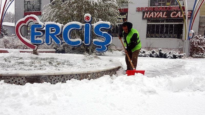 Van'ın Erciş ilçesinde kar yağışı etkili oldu. İlçe merkezinde kar kalınlığı yer yer 20 santimetreye ulaştı.