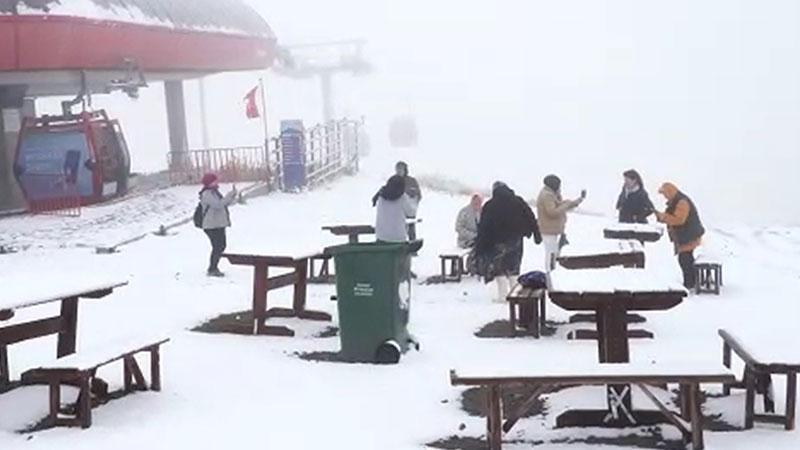 Kayseri'de hava sıcaklıklarının düşmesiyle 3 bin 917 rakımlı Erciyes Dağı'nda başlayan kar yağışı, belirli aralıklarla sürüyor. Kar yağışı, Erciyes Kayak Merkezi'nde de etkili oldu. Erciyes'in yüksek kesimlerinde kar kalınlığı 15 santimetreyi buldu, pistler beyaz örtüyle kaplandı. Kar yağışı sonrası pistlerde kardan adam yapıldı.