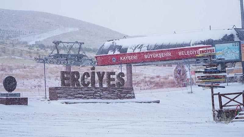 Kayseri'de hava sıcaklığının mevsim normallerinin altına düşmesi ile Erciyes Dağı'nın zirvesinde, kar yağışı etkili oldu. 3 bin 917 metre yüksekliğe gece saatlerinde yağan kar, kayak merkezinin bulunduğu alanı da beyaza bürüdü. Erciyes'in yüksek kesimlerinde kar kalınlığı, 10 santimetreye kadar ulaştı. Bölgede kar yağışı aralıklarla sürüyor.