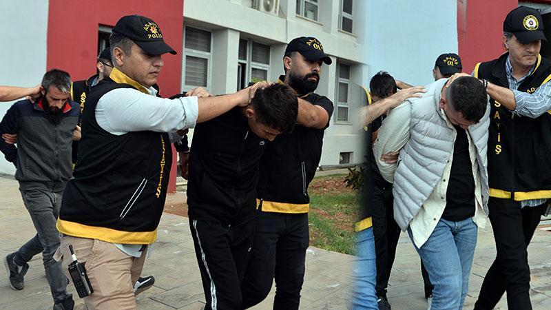 Emniyetteki işlemlerinin ardından adliyeye sevk edilen şüpheliler, çıkarıldıkları mahkemece tutuklandı. (DHA)