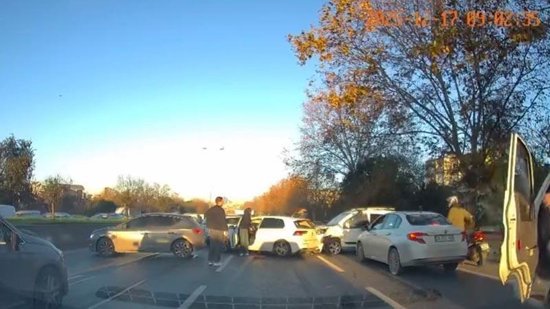 Esenler'de 4 aracın karıştığı zincirleme kaza kamerada