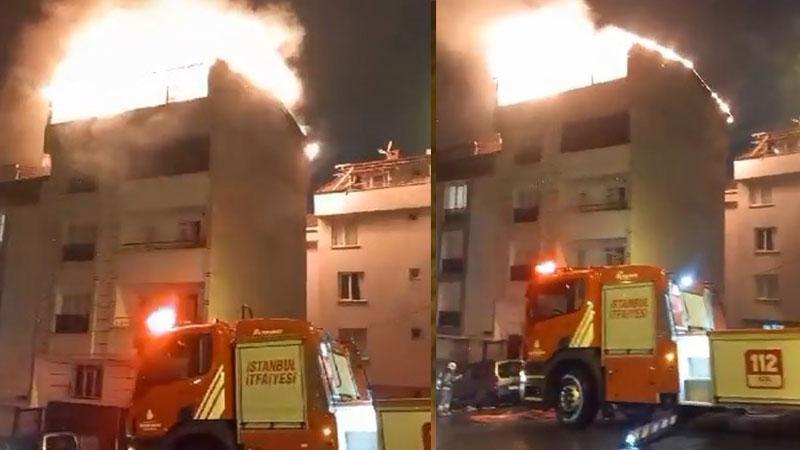 Esenyurt'ta 5 katlı binanın çatısı alevlere teslim oldu