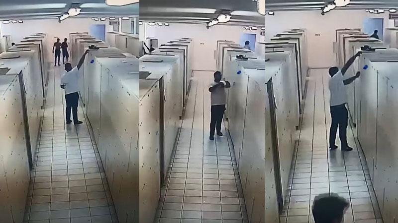 Esenyurt'ta bulunan su parkındaki 1 kişi, kilitli dolabı zorlayıp kırdı. Önce cüzdandaki paraları alan ardından da dolaptaki çantayı çalan şüpheli daha sonra soyunma odasından çıktı. Hırsızlık anları güvenlik kamerası görüntülerine saniye saniye yansıdı.
