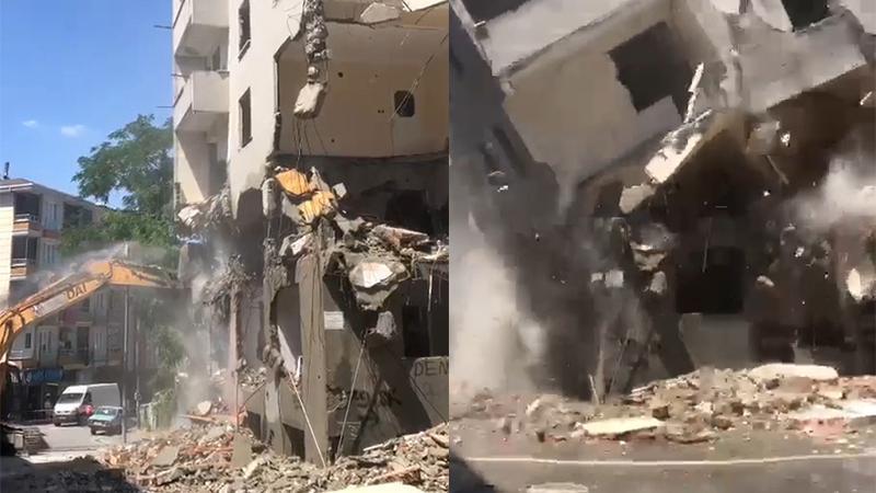Esenyurt'ta kontrollü yıkımı yapılan 5 katlı binanın çökme anı kamerada