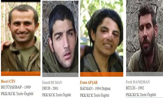 Bakanlıktan yapılan yazılı açıklamaya göre, geçen hafta sonu jandarmanın Siirt’in Eruh ilçesi Ciraf mevkisinde düzenlediği hava destekli operasyonda 5 terörist etkisiz hale getirildi. Teröristlerden birinin terörden arananlar listesinin turuncu kategorisinde yer aldığı ve 1 milyon TL'ye kadar ödülle aranan 'Jiyan' kod adlı Esma Afşar olduğu belirlenirken, 2 teröristin de gri kategoride yer aldığı ve 500 bin TL'ye kadar ödülle arandığı belirlendi. Gri listede yer alan teröristlerin de sözde yönetici 'Mahir Nemrut' kod adlı Ferit Danışman ve bombalı saldırıların sorumlusu 'Azad' kod adlı İsmail Duman olduğu tespit edildi.