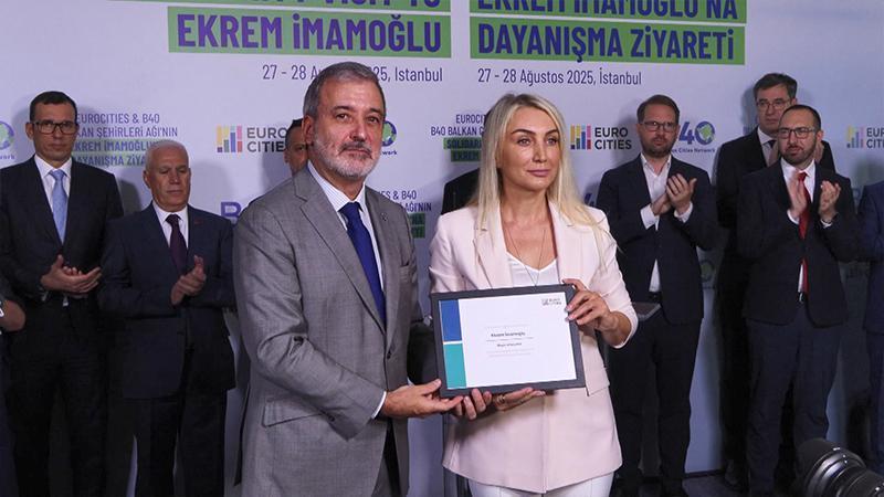 Konuşmanın ardından Eurocities & B40 Balkan Cites Network heyeti tarafından Ekrem İmamoğlu'na Özel Demokrasi Ödülü verildi. Ödülü Ekrem İmamoğlu adına eşi Dilek İmamoğlu teslim aldı. Saraçhane'deki programın ardından Silivri Ceza İnfaz Kurumu'na giden heyet, Ekrem İmamoğlu'nu ziyaret etti. Ziyaretin ardından açıklama yapan İBB Başkanvekili Nuri Aslan, "İBB Başkanımız, Cumhurbaşkanı adayımız Ekrem İmamoğlu'nun ilçe belediye başkanlarımızın liyakatta çalışan bürokratlarımızın, yol arkadaşlarımızın hukuksuzca tutuklu bulunduğu Silivri Cezaevi'ndeyiz. Avrupalı belediye başkanlığından oluşan Eurocities heyeti yanımızda Ekrem Başkanımıza destek olmak için geldiler. Bu ziyaret bize gösteriyor ki 5 aydır sokaklarımızdan meydanlarımızdan, üniversitelerimizden yükselen adalet ve demokratik değişim isteği dünyada da yankı buluyor" şeklinde konuştu.
