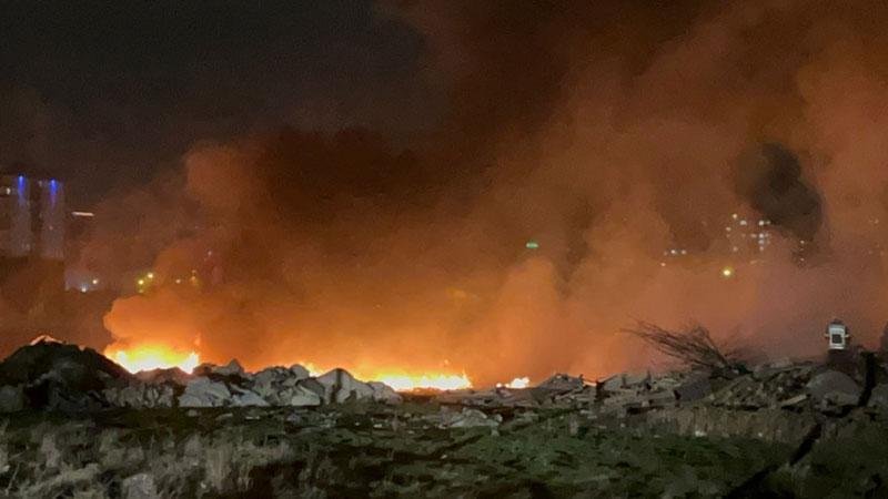 Evin bahçesindeki sünger ve paletler alev alev yandı
