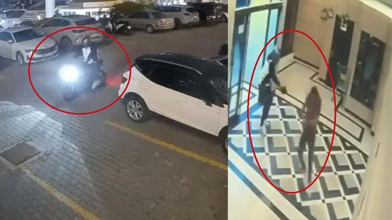 Öte yandan motosikletli şüpheli kaçarken, olay anı ise binanın güvenlik kamerasına yansıdı.