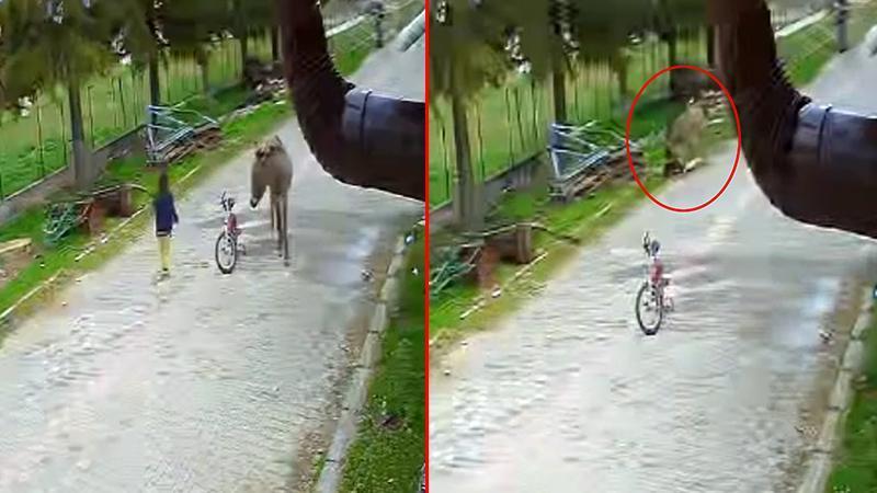 Evinin önünde oynayan çocuğa eşek saldırdı; o anlar kamerada