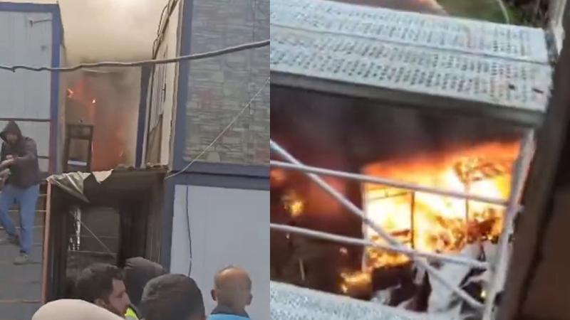 Eyüpsultan'da inşaat işçilerinin kaldığı konteynerlerde çıkan yangı, itfaiye ekiplerince söndürülürken o anlar cep telefonu kamerasıyla kaydedildi.