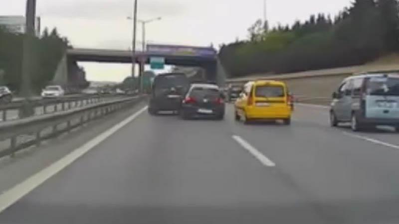 Eyüpsultan'da TEM Otoyolu'nda makas atarak ilerleyen otomobil, sol şeritteki hafif ticari araca çarptı. 4 aracın hasar gördüğü kaza, başka bir otomobildeki araç kamerası tarafından kaydedildi.