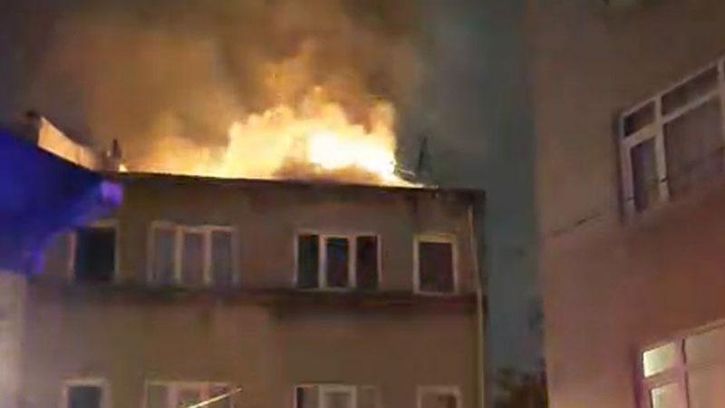 Fatih'te 3 katlı binanın çatısı alev alev yandı