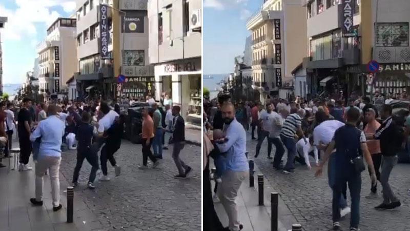 Olay, dün öğlen saatlerinde Fatih Gedikpaşa Caddesi'nde meydana geldi. İddiaya göre, cadde üzerinde bulunan bir iş yerine gelen kişi ile iş yeri sahibi arasında alacak verecek meselesinden dolayı tartışma yaşandı. Tartışma sırasında iş yeri sahibi yakınlarına haber vereceğini söyledi. Tartıştığı kişi de dışarı çıkarak, yakınlarına haber verdi. Olay yerine gelen her iki tarafın yakınları yumruk ve tekmelerle bir birlerine saldırdılar. İhbar üzerine gelen polis ekipleri, tarafları ayırmakta güçlük çekerken, kavga anları amatör kameraya yansıdı.