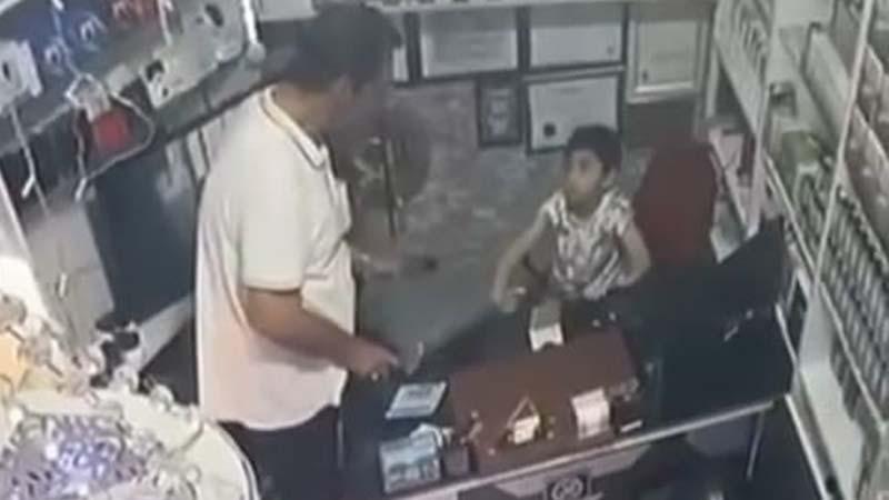 Fatih'te bir iş yerine giren şüpheli, masada oturan çocuğu oyalayarak cep telefonunu aldı. O anlar güvenlik kamerasına yansıdı.