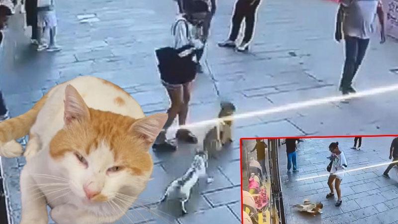 Fatih'te esnafın sahiplendiği 'Muhtar' isimli kedi, yoldan geçen tasmalı köpeğe ve sahibine saldırdı. Çevredekilerin ayrıdığı kedi ve köpeğin o anları güvenlik kamerasına yansıdı.